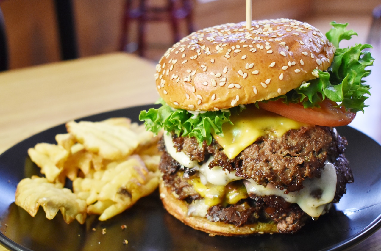 Find a 10-patty burger at Trackside Eatery & Pub in Albion