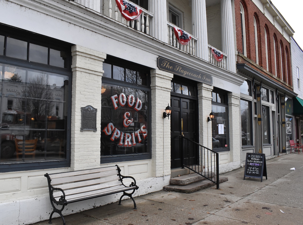 The exterior at The Stagecoach Inn, 201 W. Michigan Ave. in Marshall, on Wednesday, March 5, 2025. The business has been around since the 1830’s. The restaurant is most famous for burgers and cocktails, but it also sells fish, sandwiches, steak and salads.Chloe Miller | MLive.com