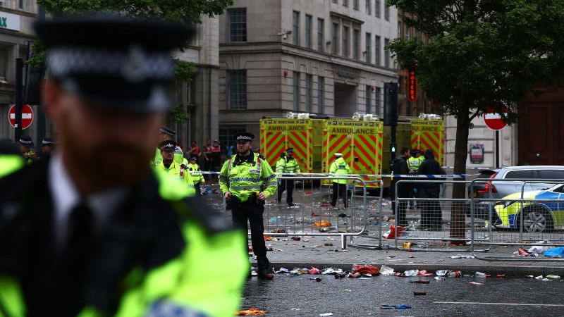 The incident came as the city was filled with soccer fans attending an open-top bus parade to celebrate Liverpool Football Club’s 20th top-flight league title.