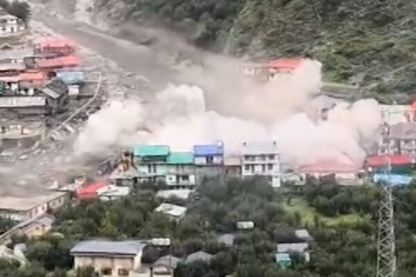 Facebook Tweet Email Link A surge of flood water tore through a mountainous village in northern India Tuesday, leaving at least four people dead and dozens missing, officials said. Dramatic video from the Himalayan village of Dharali, Uttarakhand state, shows the wall of water, mud and debris tearing down the mountainside and through the village,…